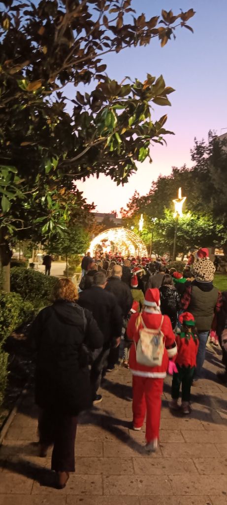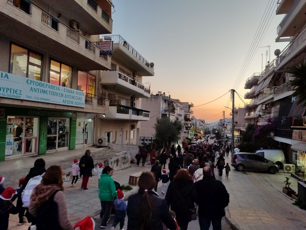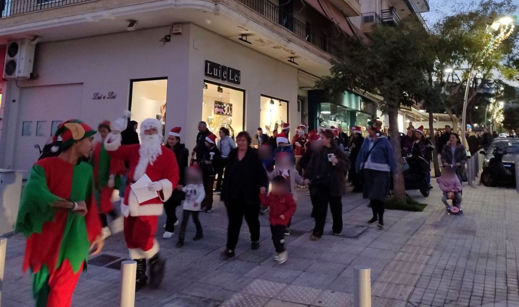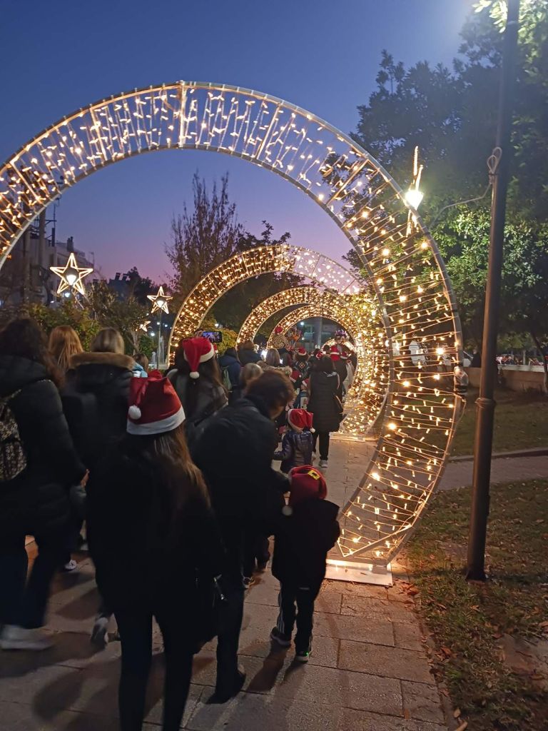 Νωρίτερα, δεκάδες παιδιά μαζί με τους γονείς και τους κηδεμόνες τους συμμετείχαν στο «Santa Walk», που πραγματοποιήθηκε για πρώτη φορά φέτος. Φορώντας αγιοβασιλιάτικα σκουφάκια που προσέφερε ο Δήμος και συνοδευόμενοι από τμήμα της Φιλαρμονικής Πετρούπολης, περπάτησαν με χριστουγεννιάτικες μελωδίες από την πλατεία Αγίου Δημητρίου έως την πλατεία «Ηρώ».