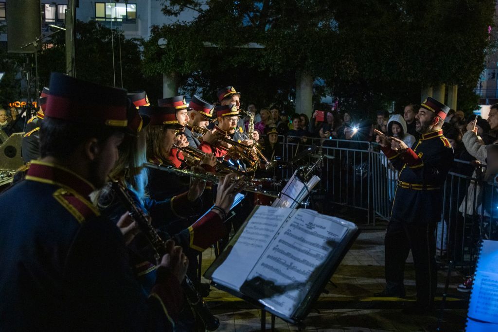 Το μουσικό πρόγραμμα άνοιξε με το συγκρότημα Παραδοσιακής Μουσικής του Δημοτικού Ωδείου Πετρούπολης, που ερμήνευσε κάλαντα από διάφορες περιοχές της Ελλάδας, ενώ στη συνέχεια η Φιλαρμονική του Δήμου παρουσίασε αγαπημένα χριστουγεννιάτικα τραγούδια.