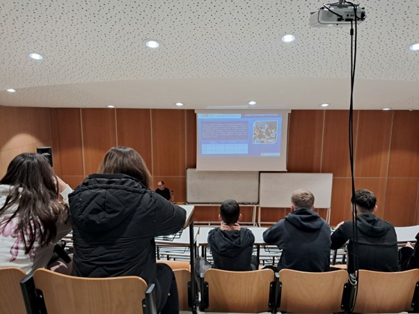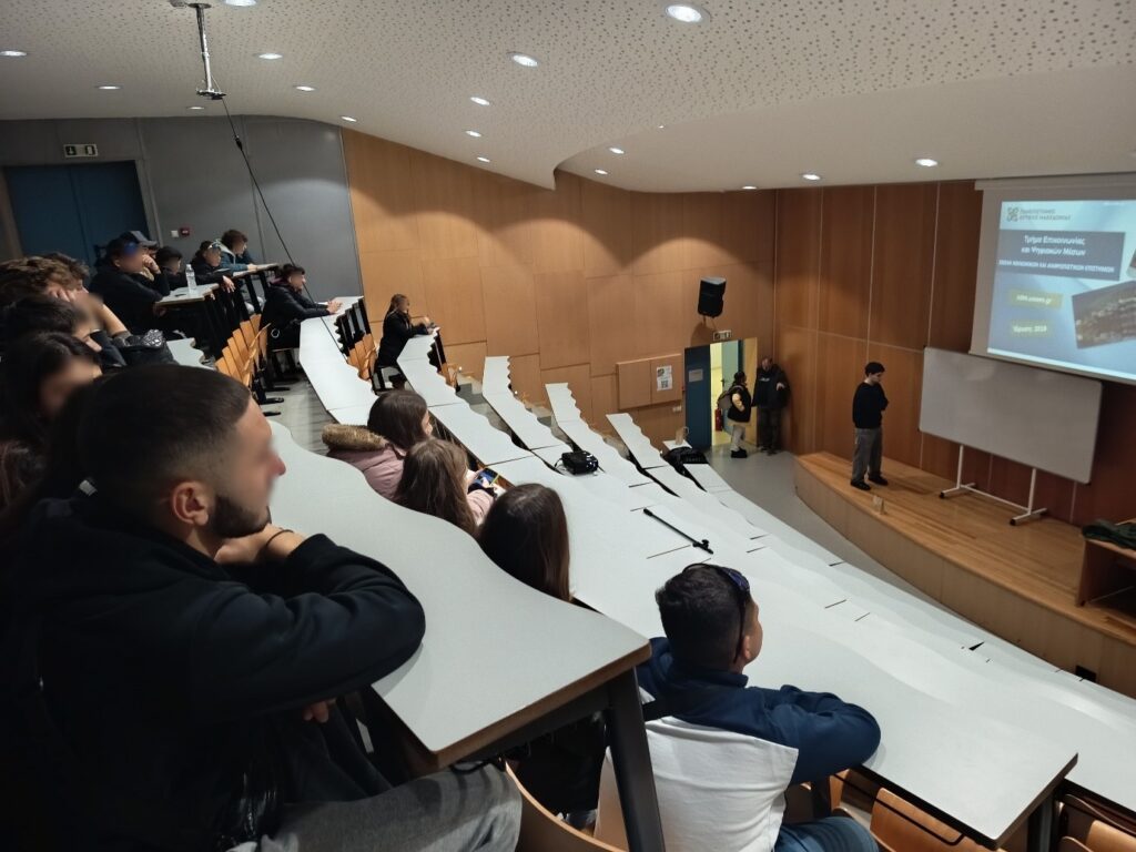Στη συνέχεια, οι μαθητές μετέβησαν στο Τμήμα Επικοινωνίας και Ψηφιακών Μέσων, όπου είχαν την ευκαιρία να έρθουν σε επαφή με τον παλμό της σύγχρονης ψηφιακής εποχής. Η Καθηγήτρια, κ. Μαρίνα-Στεφανία Γιαννακάκη, και ο Καθηγητής, κ. Σταμάτης Πουλακιδάκος, παρουσίασαν το πρόγραμμα σπουδών του τμήματος καθώς και τις προκλήσεις και τις αναδυόμενες επαγγελματικές προοπτικές στον χώρο της επικοινωνίας και των ψηφιακών μέσων. Ακολούθησε συζήτηση με τους μαθητές σχετικά με τον τρόπο που η στρατηγική σκέψη, ο καινοτόμος σχεδιασμός και τα ψηφιακά μέσα διαμορφώνουν το μέλλον της επικοινωνίας, προσφέροντας πολύτιμα ερεθίσματα για τον δικό τους μελλοντικό προσανατολισμό.