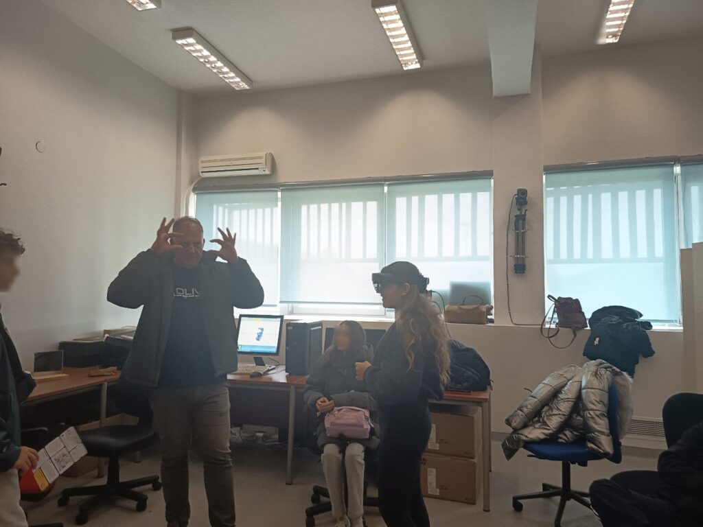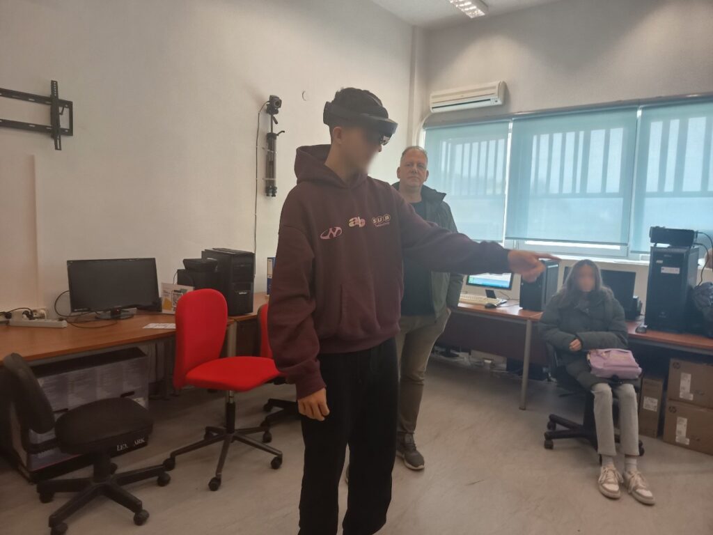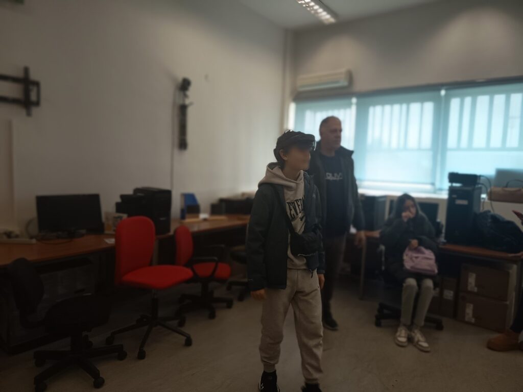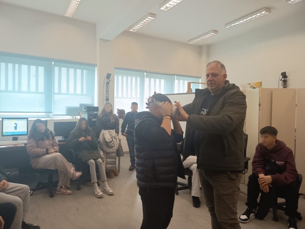 Η εκπαιδευτική εμπειρία κορυφώθηκε στο υπερσύγχρονο εργαστήριο του τμήματος, υπό την καθοδήγηση του υπεύθυνου καθηγητή κ. Αναστάσιου Γκούτζιου. Αρχικά, οι μαθητές ήρθαν σε επαφή με τεχνολογίες αιχμής VR/AR (Εικονικής και Επαυξημένης Πραγματικότητας), βιώνοντας μέσα από ψηφιακές εφαρμογές τη σύγκλιση φυσικής και ψηφιακής πραγματικότητας. Στη συνέχεια, η δράση μεταφέρθηκε στον χώρο της τηλεοπτικής επικοινωνίας, όπου τα παιδιά γνώρισαν τη μαγεία της παραγωγής στο Green Room και τις δυνατότητες της Web TV, αναλαμβάνοντας ρόλους που κέντρισαν το ενδιαφέρον τους και προκάλεσαν τον ενθουσιασμό τους. Πολύτιμη ήταν επίσης, η συμβολή του Γιάννη Κατσαούνη, φοιτητή στο τμήμα Επικοινωνίας και Ψηφιακών Μέσων, ο οποίος μοιράστηκε με τους μαθητές πτυχές της ακαδημαϊκής του πορείας και της φοιτητικής ζωής στην Καστοριά.