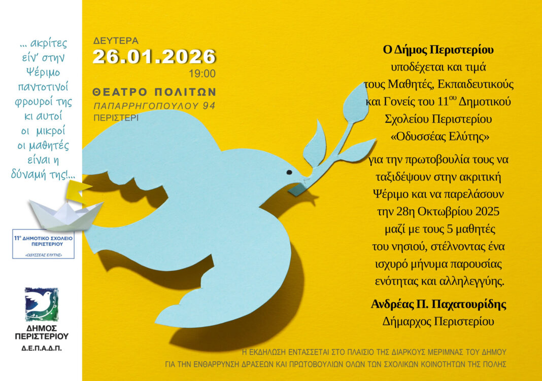 Οι ενδιαφερόμενοι μπορούν να υποβάλουν δηλώσεις συμμετοχής από τη Δευτέρα 26 Ιανουαρίου έως και τη Δευτέρα 9 Φεβρουαρίου 2026.